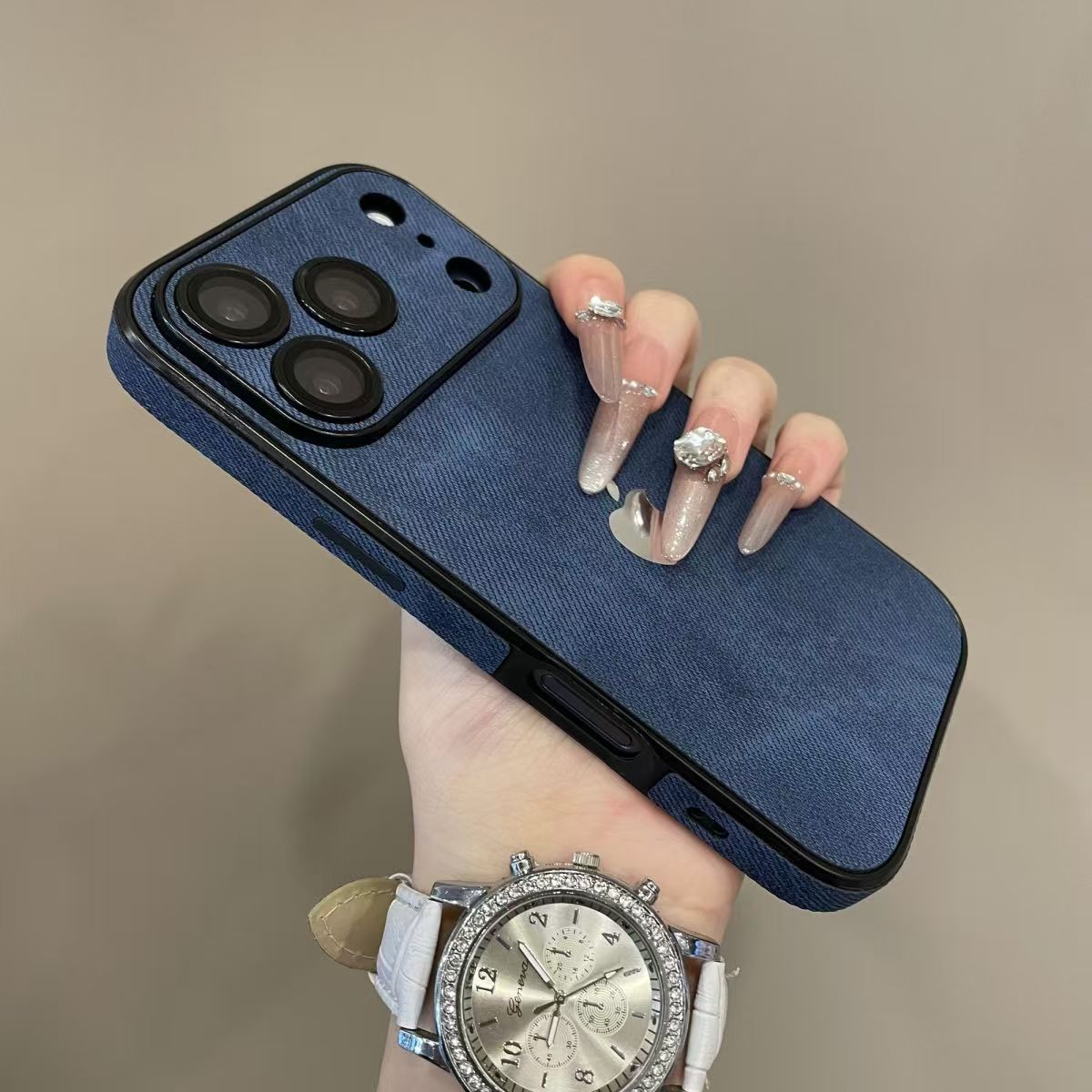 This denim patterned fully wrapped phone case breaks the prejudice that "appearance is the weakness"! The outer layer of denim fabric has a comfortable texture, and the inner layer of soft rubber cushioning structure can effectively absorb impact force, so it is not afraid of scratching the body when sliding off the desktop. The fully wrapped design covers the edges of the phone, preventing dust and sweat while also avoiding fingerprint residue during daily use. Multiple denim color options are available, ranging from classic indigo to vintage light gray, to meet your different style matching needs, making protecting your phone both fashionable and ceremonial.
