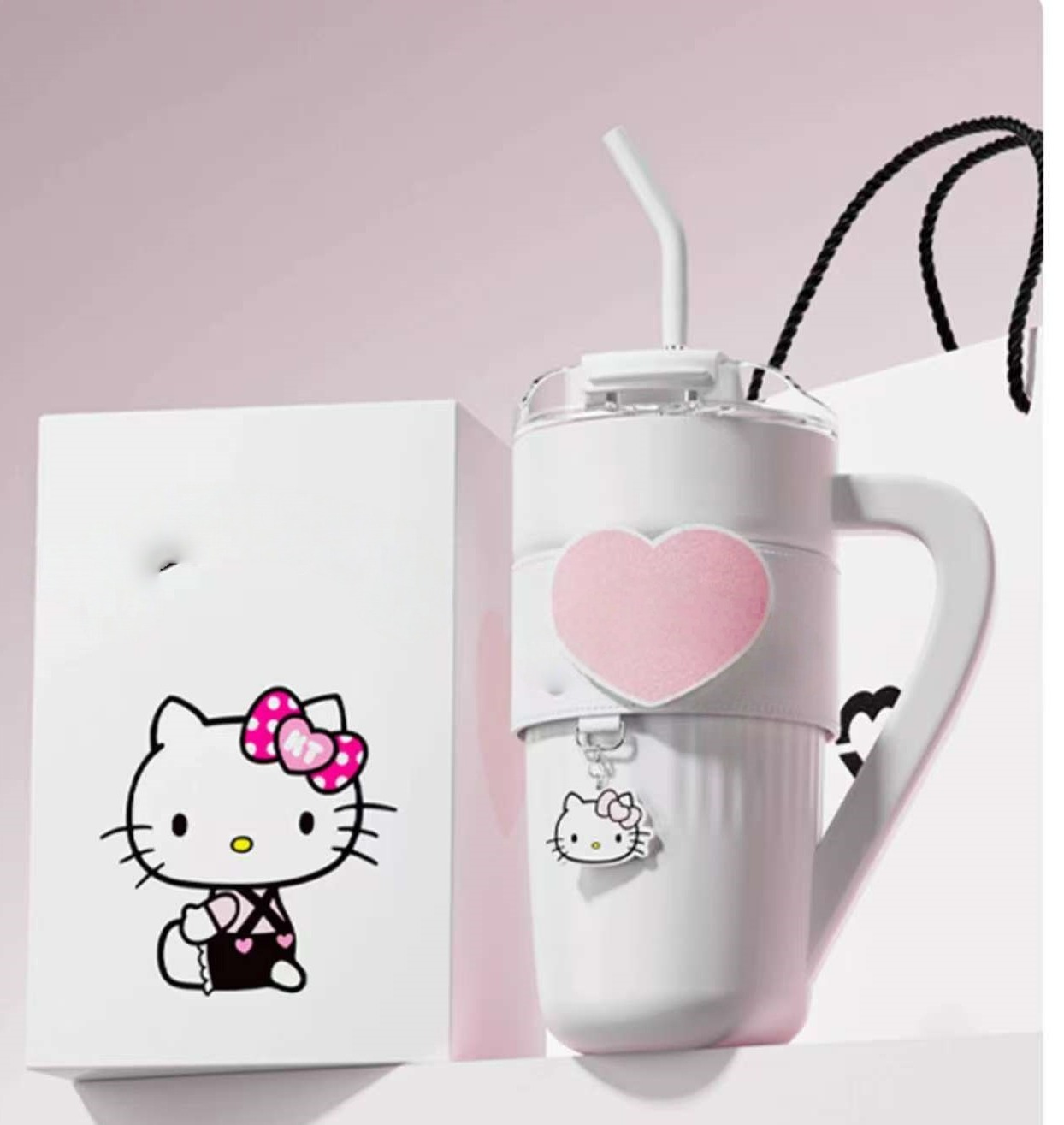 The Hello Kitty large-capacity thermos makes a stunning appearance with its classic red-and-white color scheme. The lively smiling face pattern on the cup body matches the lid with hidden cat ears—every time you lift it to drink, it feels like a sweet encounter with cuteness. Made of 316 food-grade stainless steel, its double-layer vacuum heat-retention technology keeps your morning hot coffee steaming until the afternoon. With a large 1200ml capacity, it easily meets your all-day hydration needs, so you no longer have to run back and forth to the pantry frequently. The thoughtful flip-top drinking spout can be opened and closed with one hand, allowing you to quickly rehydrate even when rushing to finish a project—your office happiness will be instantly boosted!