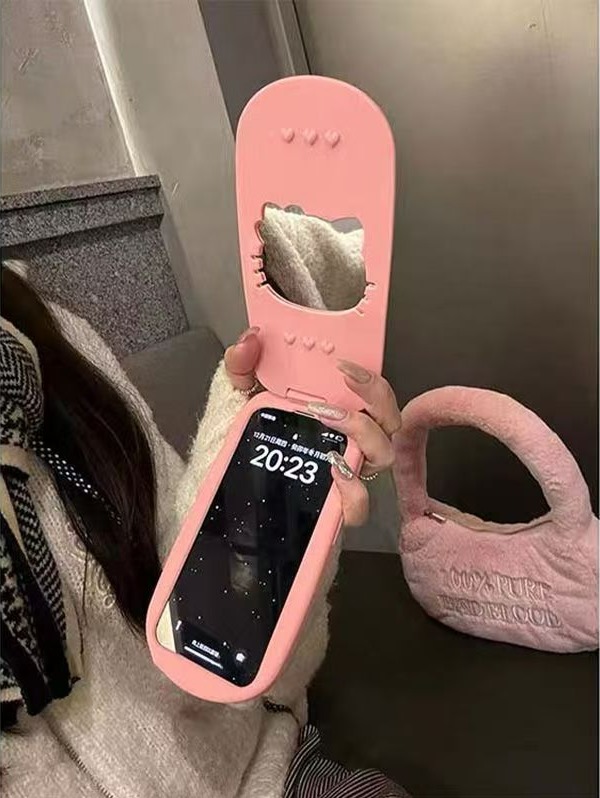 Pink Hello Kitty flip phone case, welding a girl's heart onto the phone!